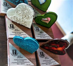 Niezwykle ważnym punktem wydarzenia było wręczenie podziękowań dla osób, które na przestrzeni 35 lat aktywnie wspierały PSONI Koło w Zgierzu w realizacji misji, która brzmi:,, Patrz na moją siłę, a nie na słabość, dzisiaj zrobiłem to, co wczoraj było niemożliwe”. Kapituła Zarządu Głównego PSONI reprezentowana w Dniu Jubileuszu przez p. Monikę Zima-Perjaszewską – Prezeskę Zarządu Głównego PSONI wyróżniła Bank Spółdzielczy w Zgierzu oraz Starostwo Powiatowe w Zgierzu szczególnymi statuetkami Kulami Doskonałości wraz Dyplomem Honorowym, zaś medalami ,,Wiernie i Wytrwale” – p. Elżbietę Szwajcer, p. Wandę Pilarczyk, p. Jolantę Łaziczną, p. Annę Milczarek p. Piotra Owczarczyka, p. Zygmunta Matusiaka oraz p. Andrzeja Milczarka. Wszyscy goście otrzymali przygotowane przez uczestników Warsztatów Terapii Zajęciowej PSONI Koło w Zgierzu okolicznościowe ceramiczne statuetki. Część oficjalną obchodów na ulicy Chełmskiej zakończono poczęstunkiem, podczas którego w kuluarach intymnymi, radosnymi, niekiedy bolesnymi i smutnymi przeżyciami dzielili się rodzice podopiecznych, byli i obecni pracownicy PSONI Koło w Zgierzu.
