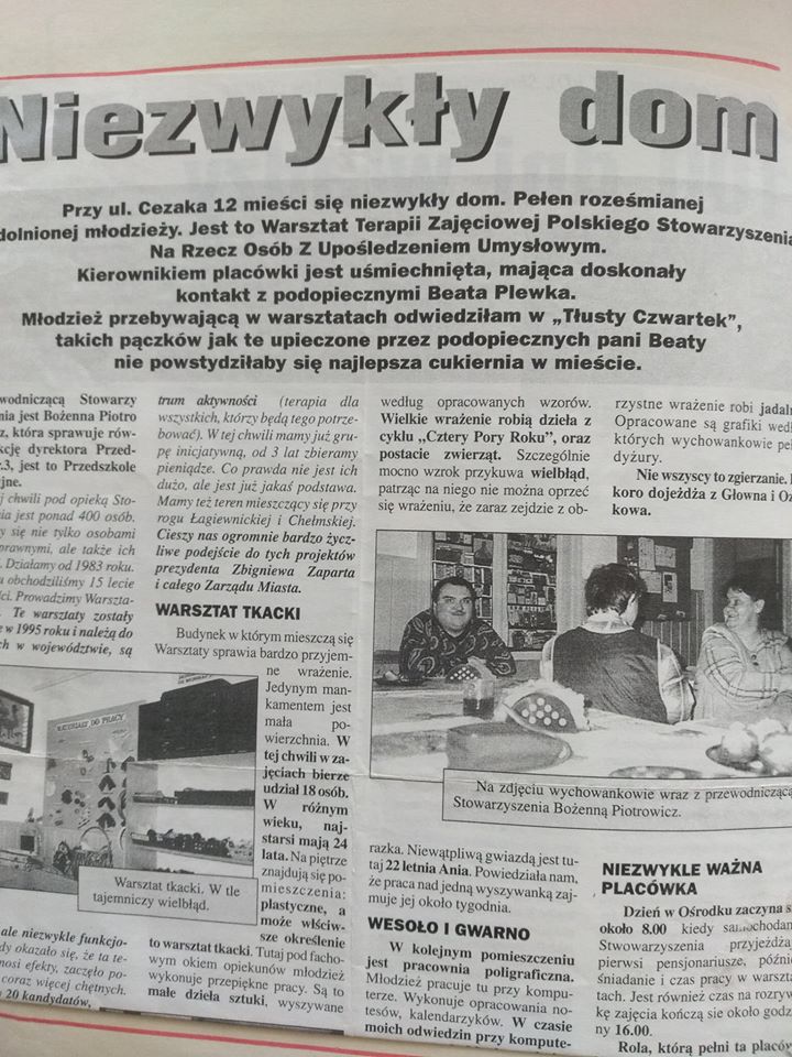 01.11.1995 Został utworzony pierwszy w mieście Warsztat Terapii Zajęciowej.