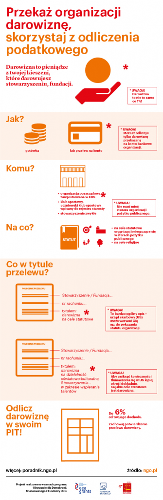 Osoby fizyczne mogą odliczyć od kwoty do opodatkowania 6% dochodu (PIT), a osoby prawne 10% dochodu (CIT).